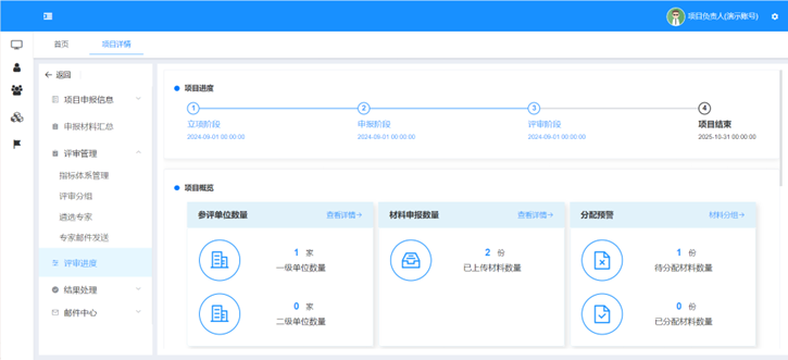 全流程線上操作,資料集中管理,評審進(jìn)度實時監(jiān)控,專家意見與打分留痕,確保了評審過程的嚴(yán)謹(jǐn)性與透明度。