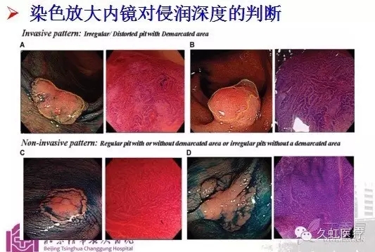 圖2. 染色放大內(nèi)鏡對(duì)浸潤深度的判斷