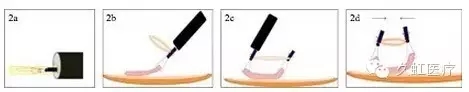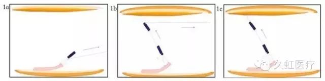 圖 1 金屬夾絲線聯(lián)合牽引技術的不同變體(1a. 直接絲線牽引法;1b. 利用「滑輪組」效應的絲線牽引法;1c. 對側絲線牽引法)