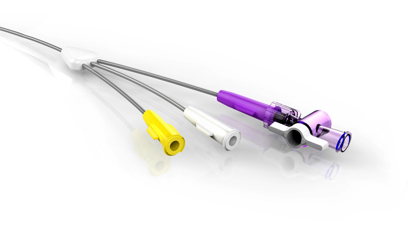 2. 三腔導(dǎo)管設(shè)計(導(dǎo)絲腔、注液腔、注氣腔),使插入和造影能夠順暢進行。