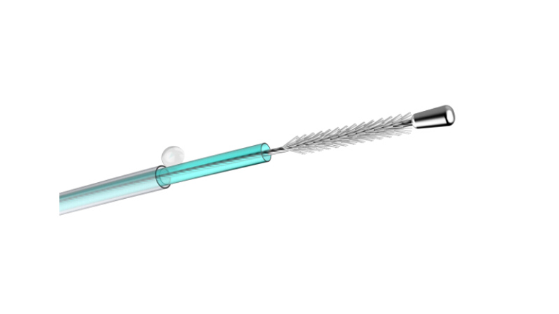 2.獨(dú)特的“鋼絲嵌合”設(shè)計(jì),刷體質(zhì)地柔軟而不失彈性,能輕松經(jīng)內(nèi)鏡部署到包括雙上葉尖段在內(nèi)的靶病灶所在支氣管;